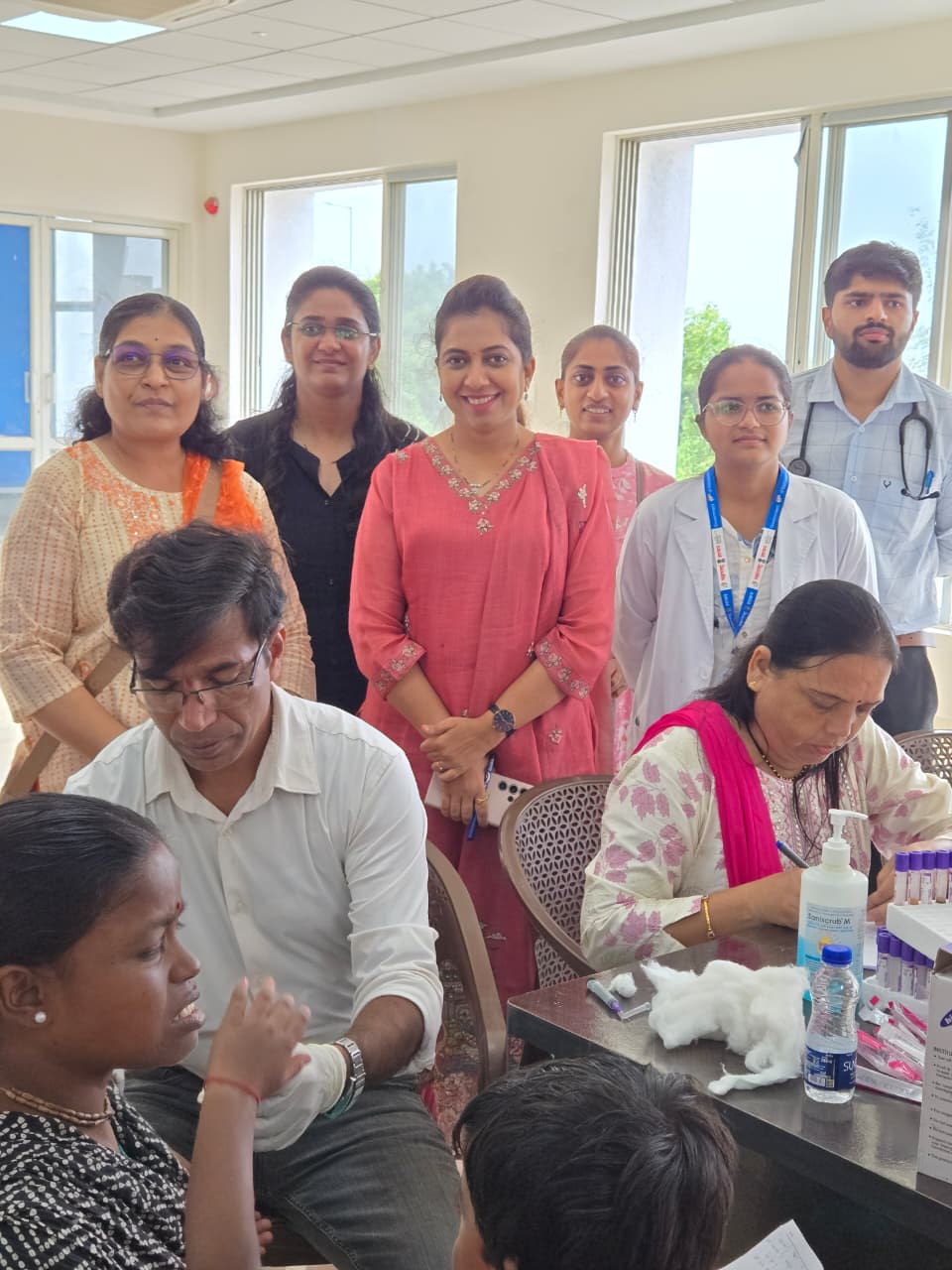 Under the guidance of Respected Dean Dr. Girish Thakur, a multispecialty health camp was organized at the Chincholi campus as part of the "Swasth Nari Sashakt Parivar" initiative, catering to the health needs of female workers.